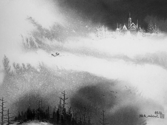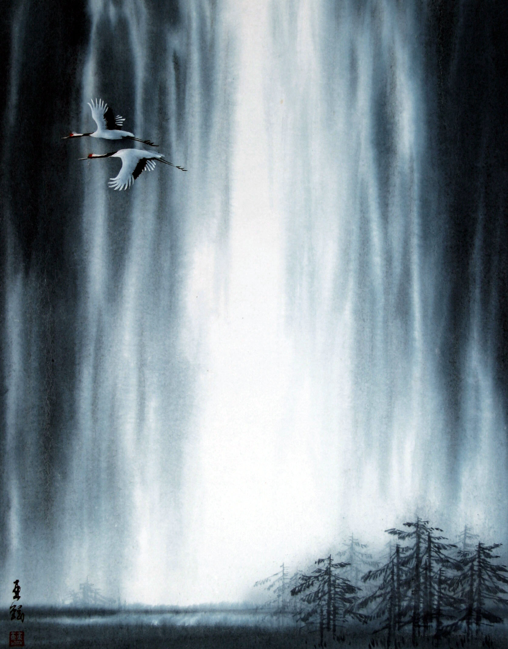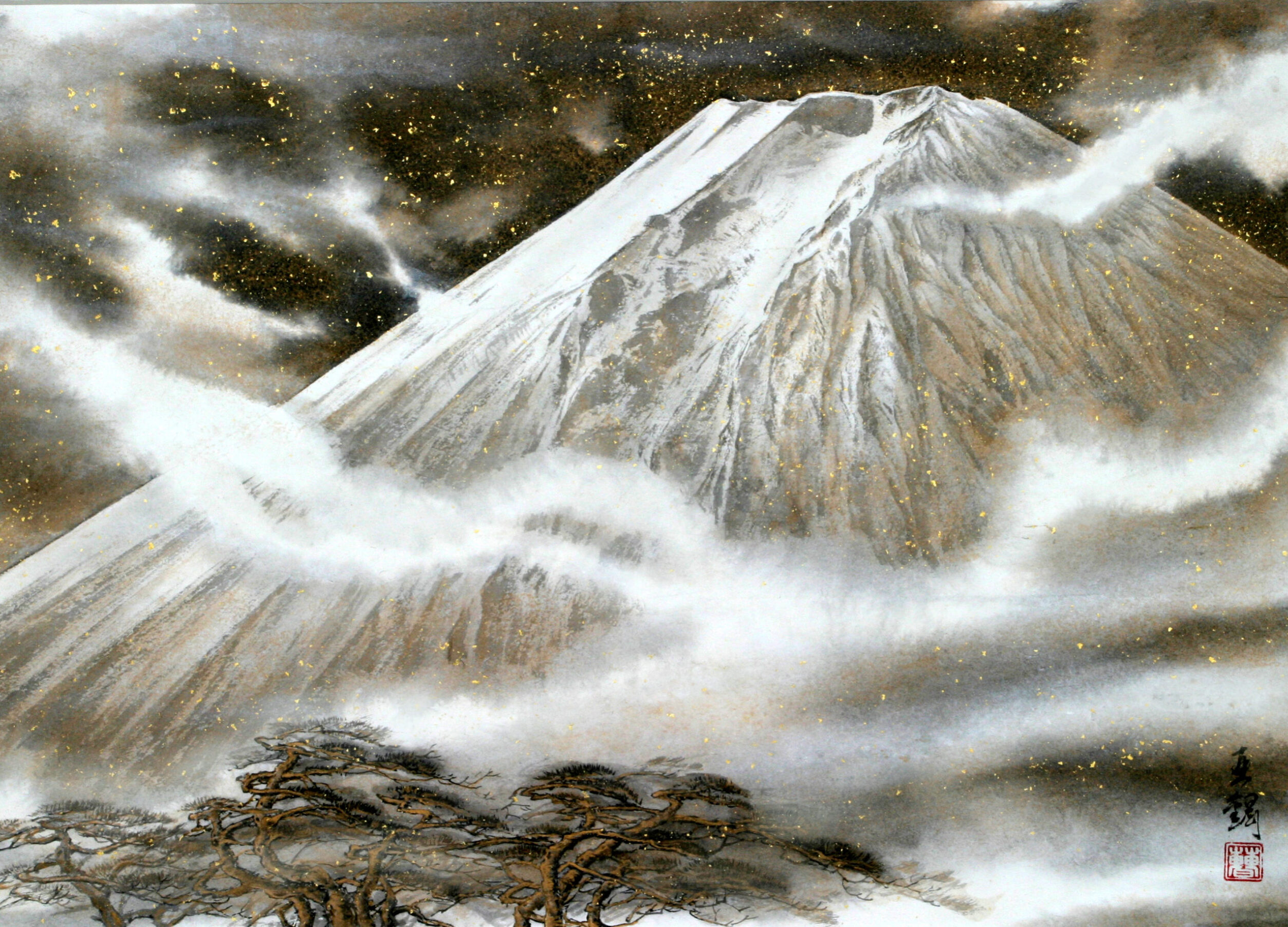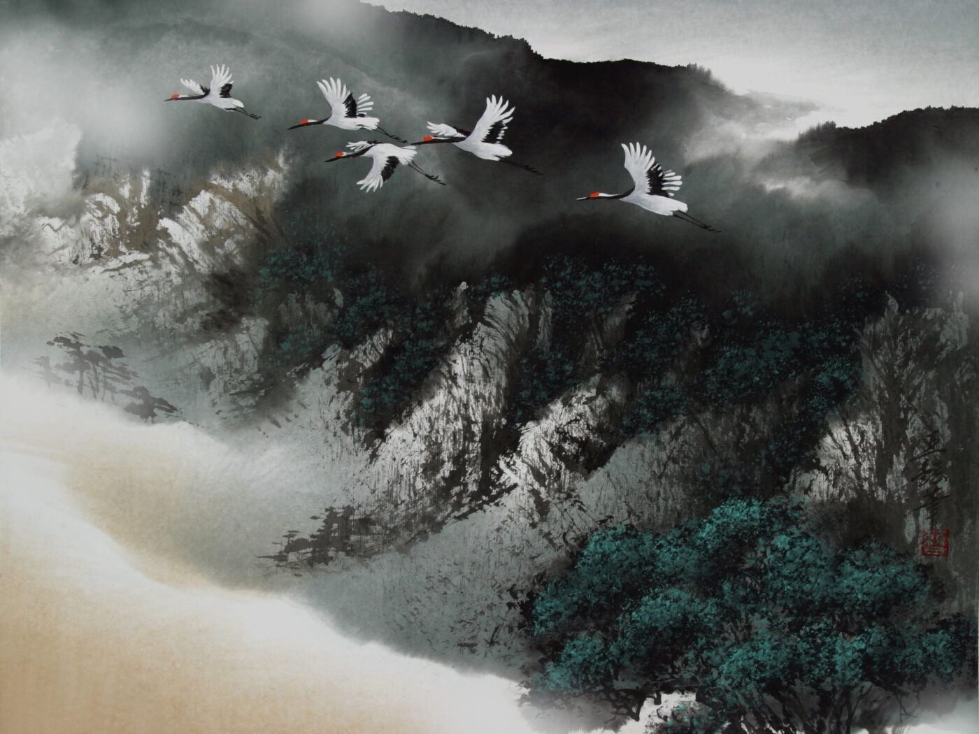 墨色の濃淡の変化によって立体感や正動感を表すところにその妙があります。唐の時代に初めて山水画に現れ、近代においては張大千が代表的な作者です。